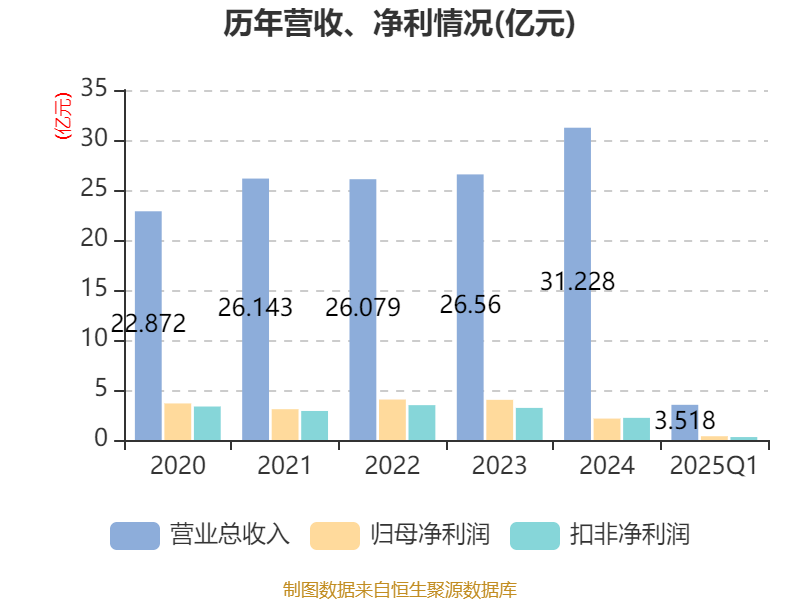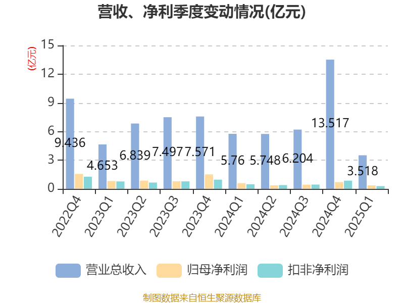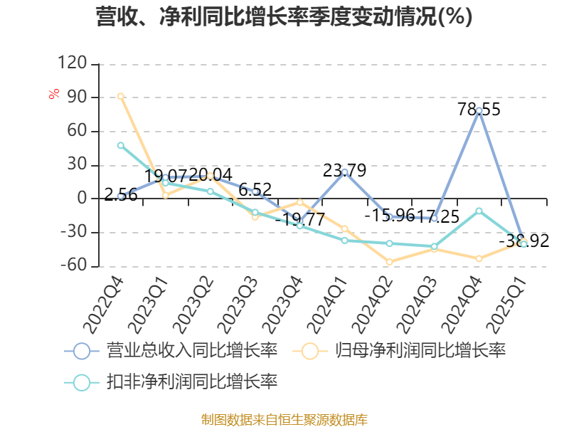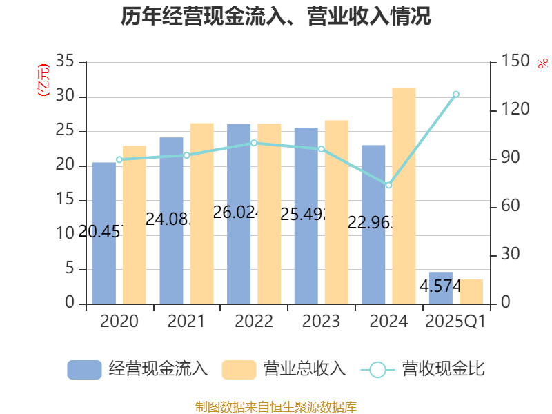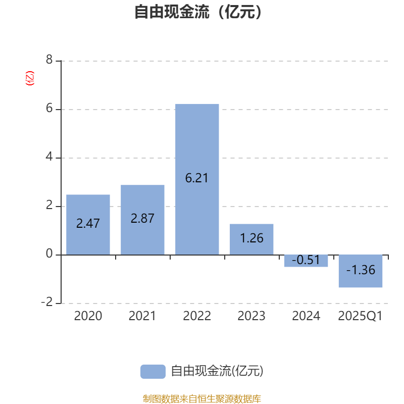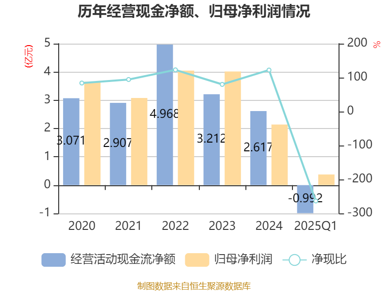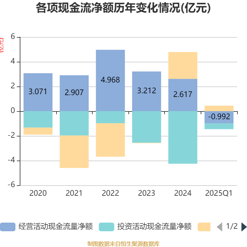 截至2025年一季度末,公司经营活动现金流净额为-9915.39万元,同比减少1.2亿元;筹资活动现金流净额4448.71万元,同比减少1.6亿元;投资活动现金流净额-4648.08万元,上年同期为-3684.27万元。