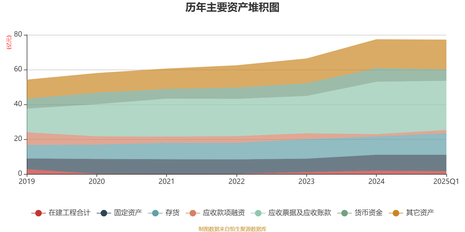资产重大变化方面,截至2025年一季度末,公司存货较上年末增加18.25%,占公司总资产比重上升2.52个百分点;应收票据及应收账款较上年末减少6.13%,占公司总资产比重下降2.29个百分点;货币资金较上年末减少16.2%,占公司总资产比重下降1.62个百分点;应收款项融资较上年末增加41.91%,占公司总资产比重上升0.71个百分点。