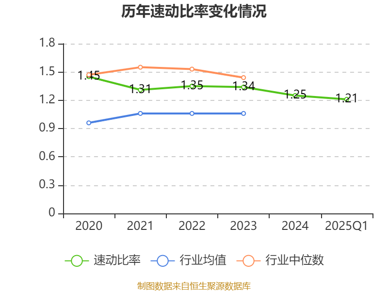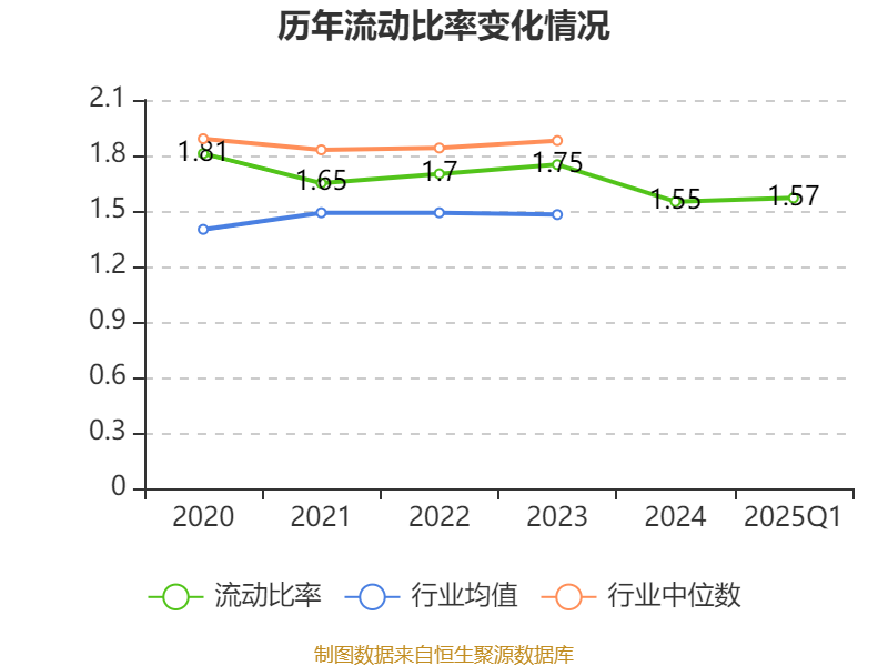 2025年第一季度,公司流动比率为1.57,速动比率为1.21。
