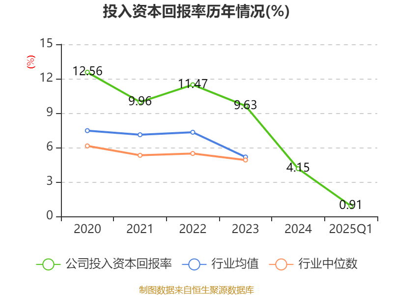 盈利能力方面, 2025年一季度公司加权平均净资产收益率为1%,同比下降0.66个百分点。公司2025年第一季度投入资本回报率为0.91%,较上年同期下降0.09个百分点。