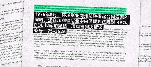 原来早在 1975 年,环球影业就曾为金刚的版权问题与雷电华电影公司打过官司,不过上次的官司中环球是被告,被指控未授权使用金刚 IP。好嘛,环球在这又唱又跳搞了半天,原来它也没有金刚的版权。