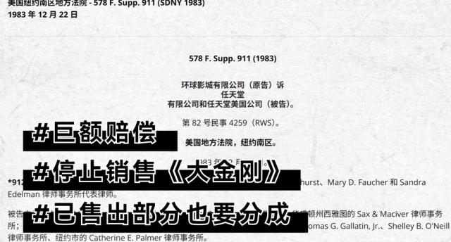 除此之外,环球有着多年的诉讼经验,而当时的小任在打官司方面还是一张白纸,也是远远不如。同时,环球拍出过多部金刚电影,它声明版权理所应当,要求赔偿好像也合情合理。