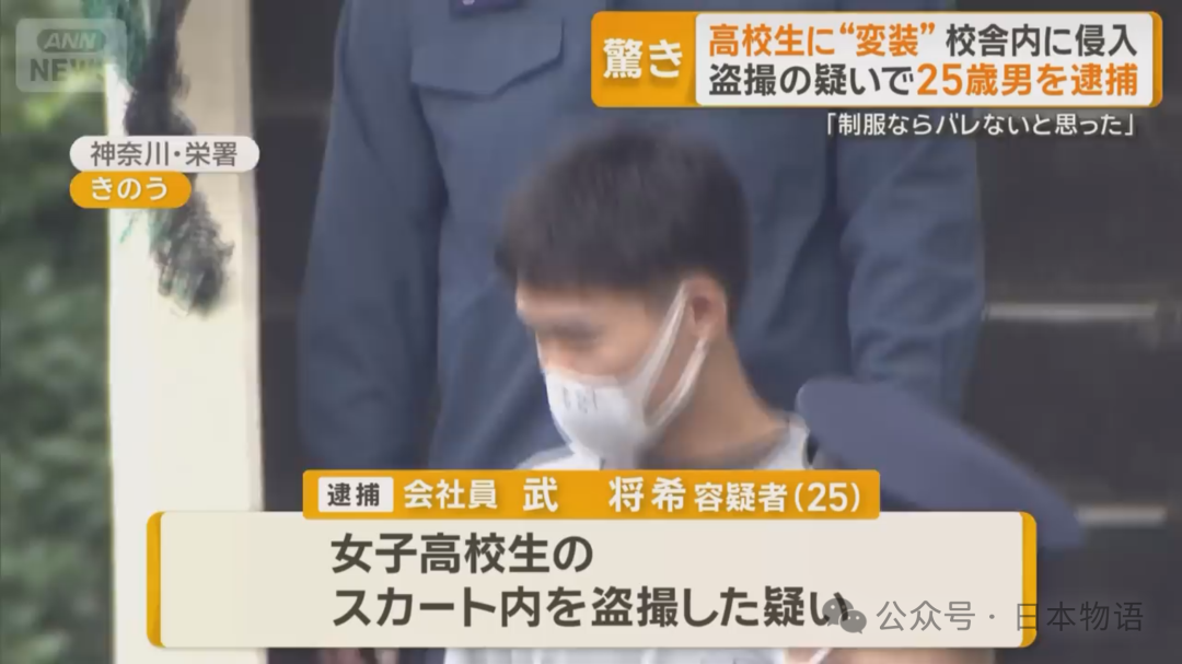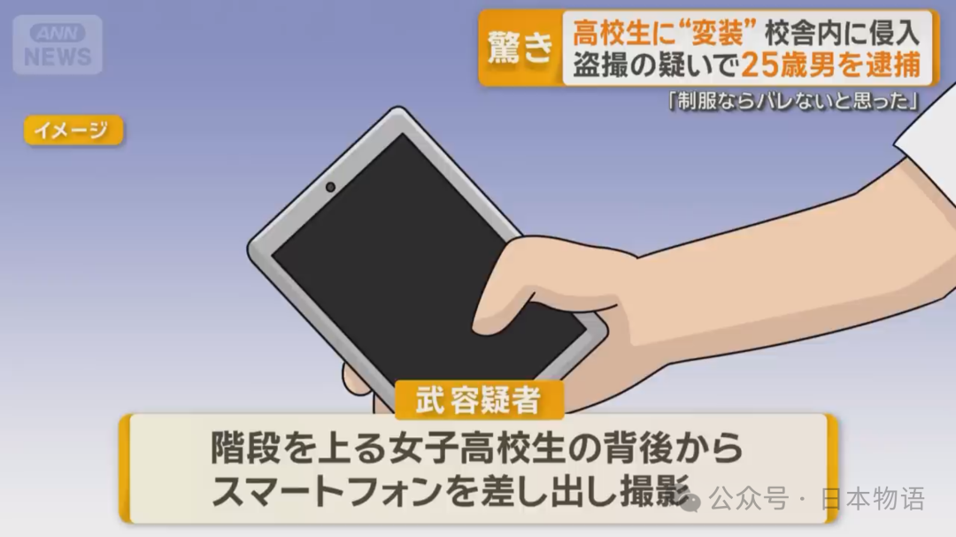 几天后,这名叫武将希的男子因另一桩案件被捕,警方在手机中发现了多段隐藏拍摄的视频,其中一段正是他在校园内拍下的画面。视频显示,他在教学楼楼梯上尾随一名女学生,用手机从背后伸出,拍摄了裙内影像,画面清晰可见受害者的内衣部分。那一分钟的影像成为证据,也暴露了他多次潜入校园偷拍的事实。